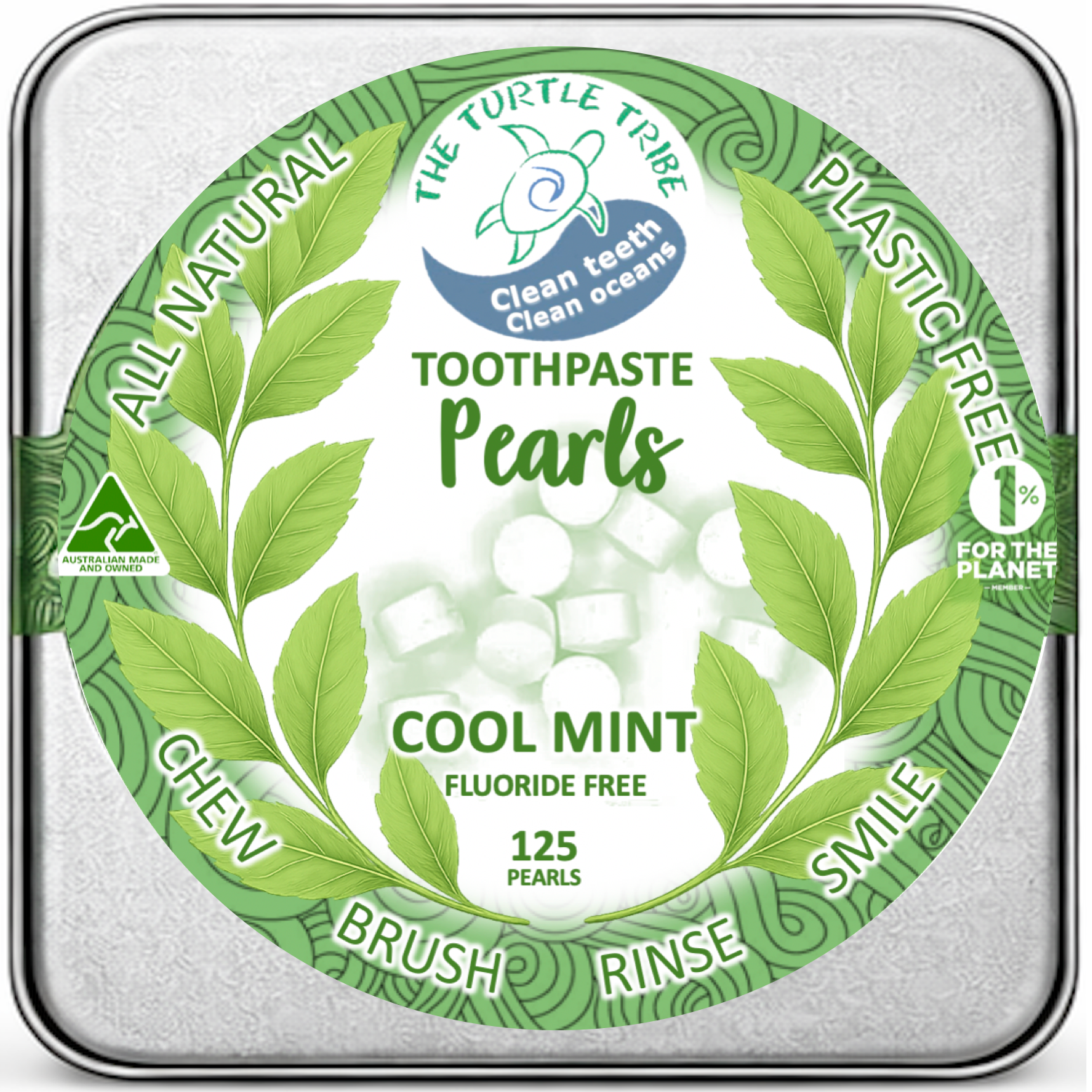 A fresh new way to brush! The Turtle Tribe Natural Toothpaste Pearls are chewable tablets that clean your teeth without the plastic waste. Just pop one in your mouth, chew, brush with a wet toothbrush, rinse, and smile.